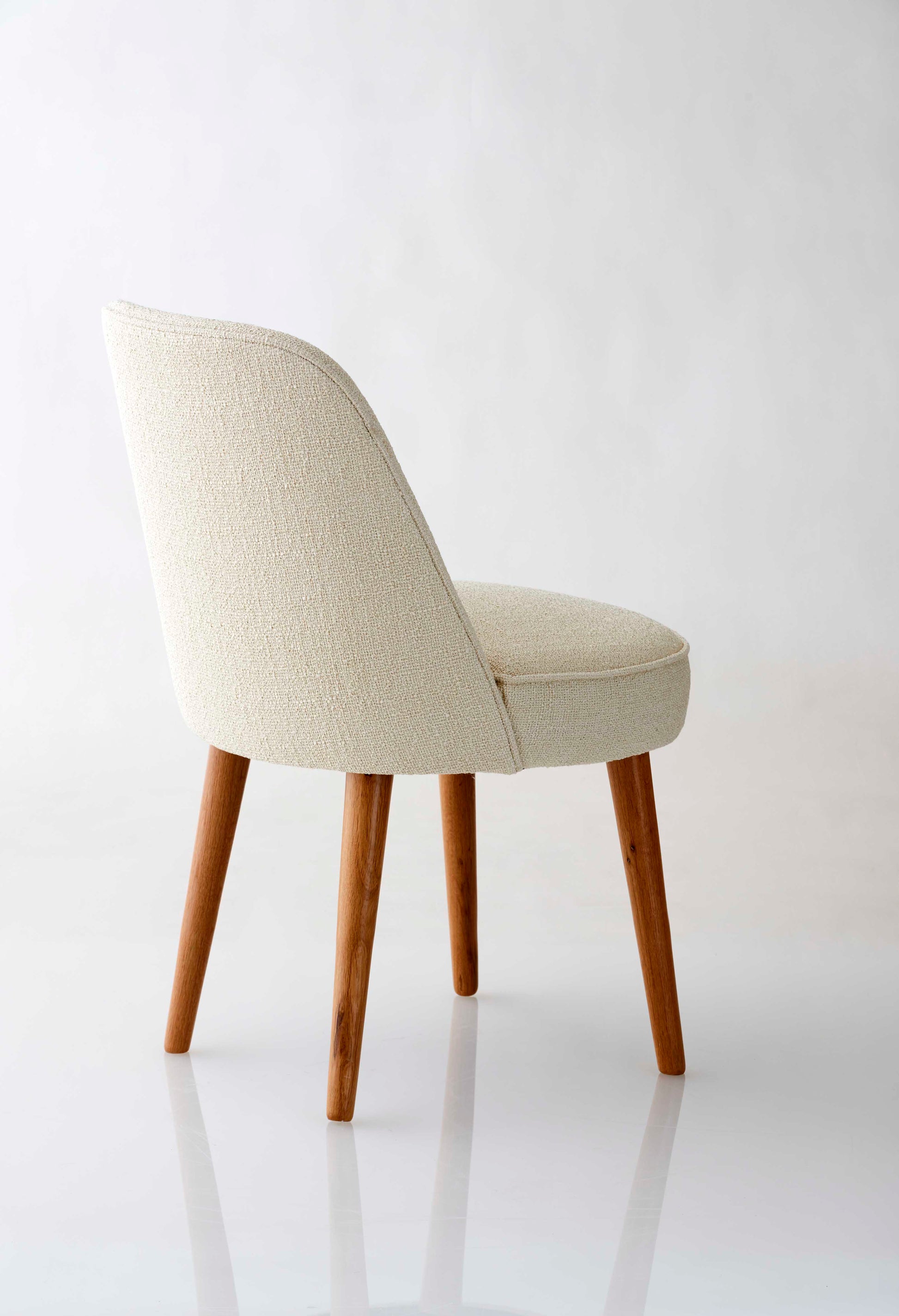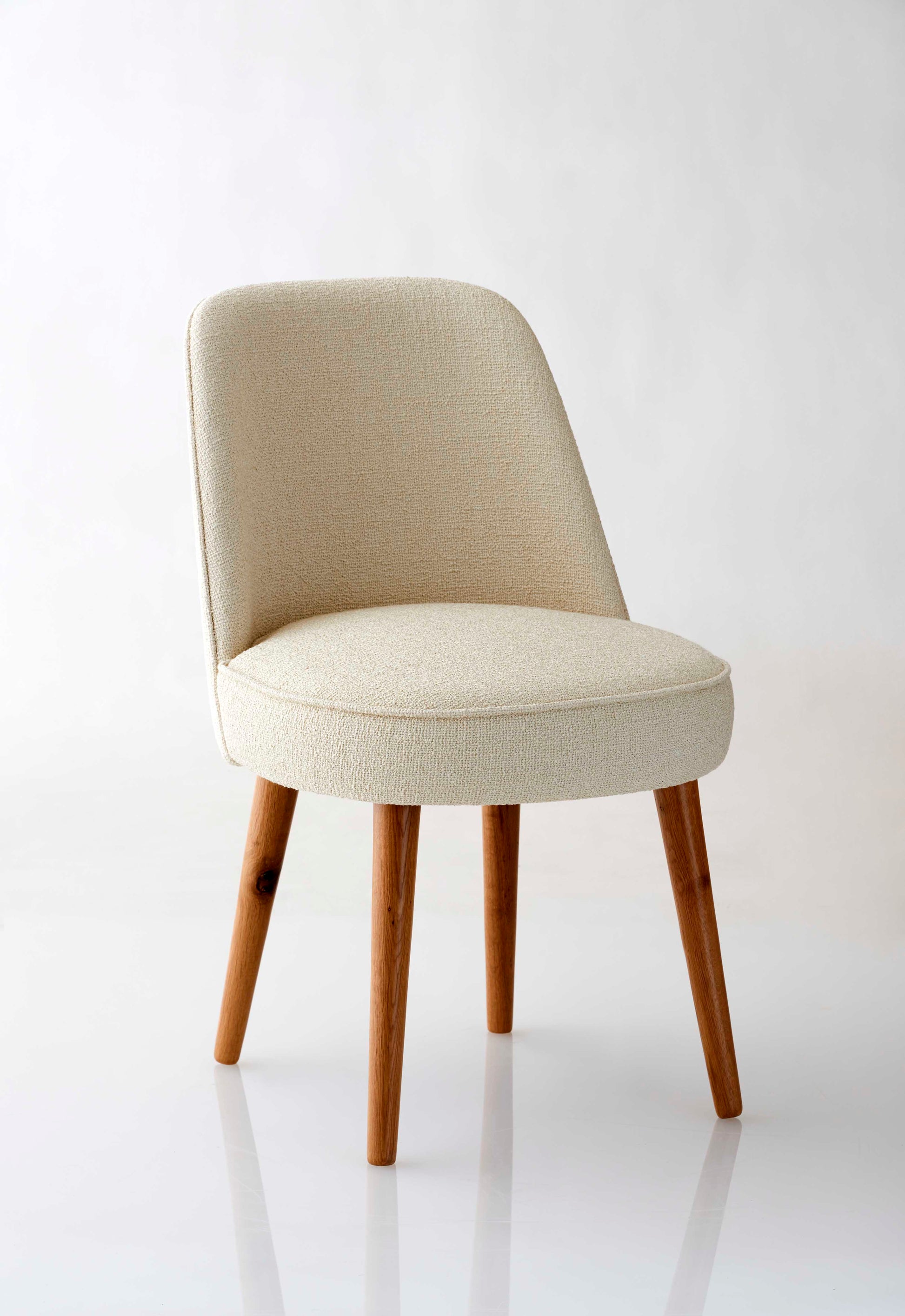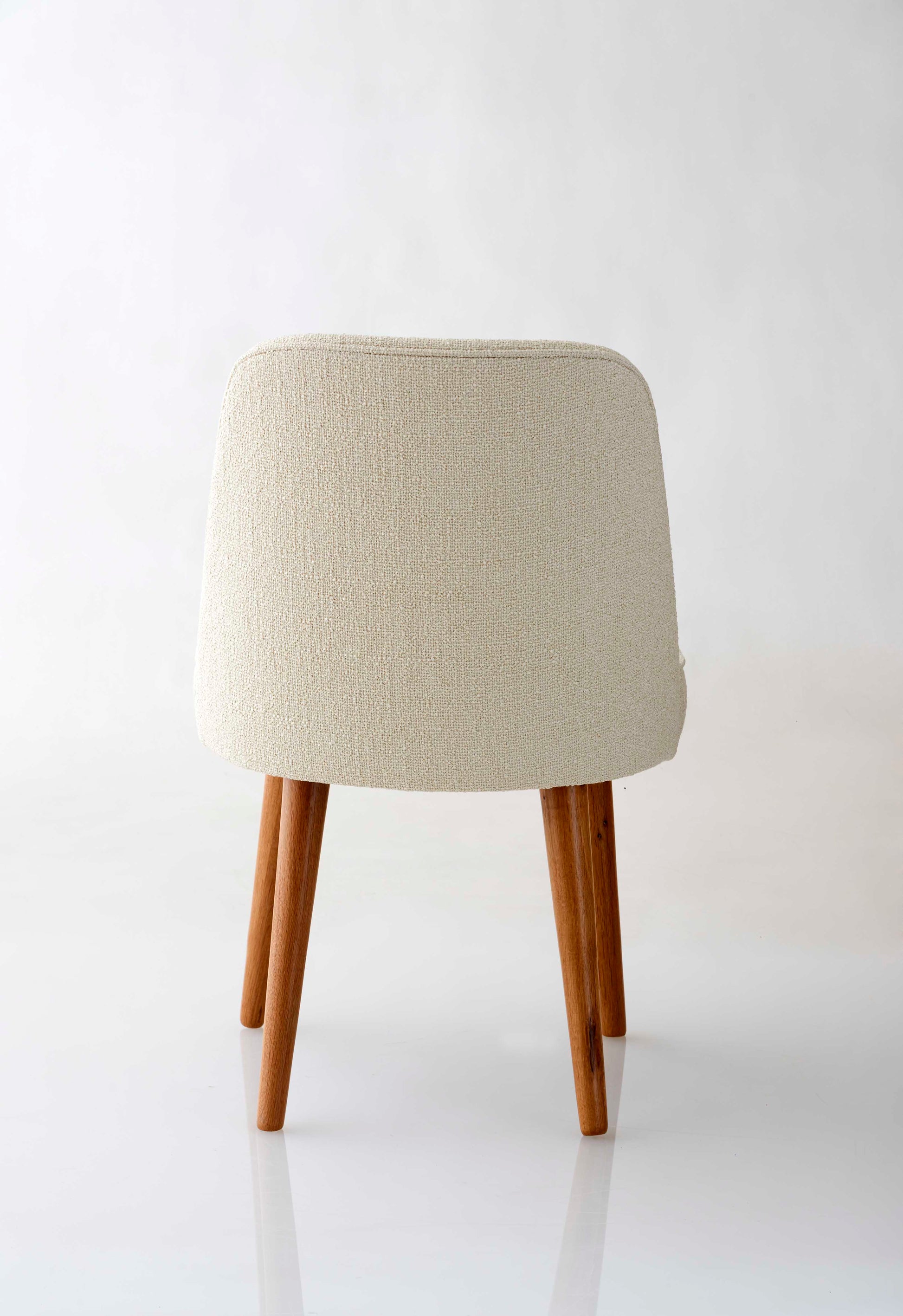 Esszimmerstuhl mit Webtextilpolsterung in Cremefarbe.