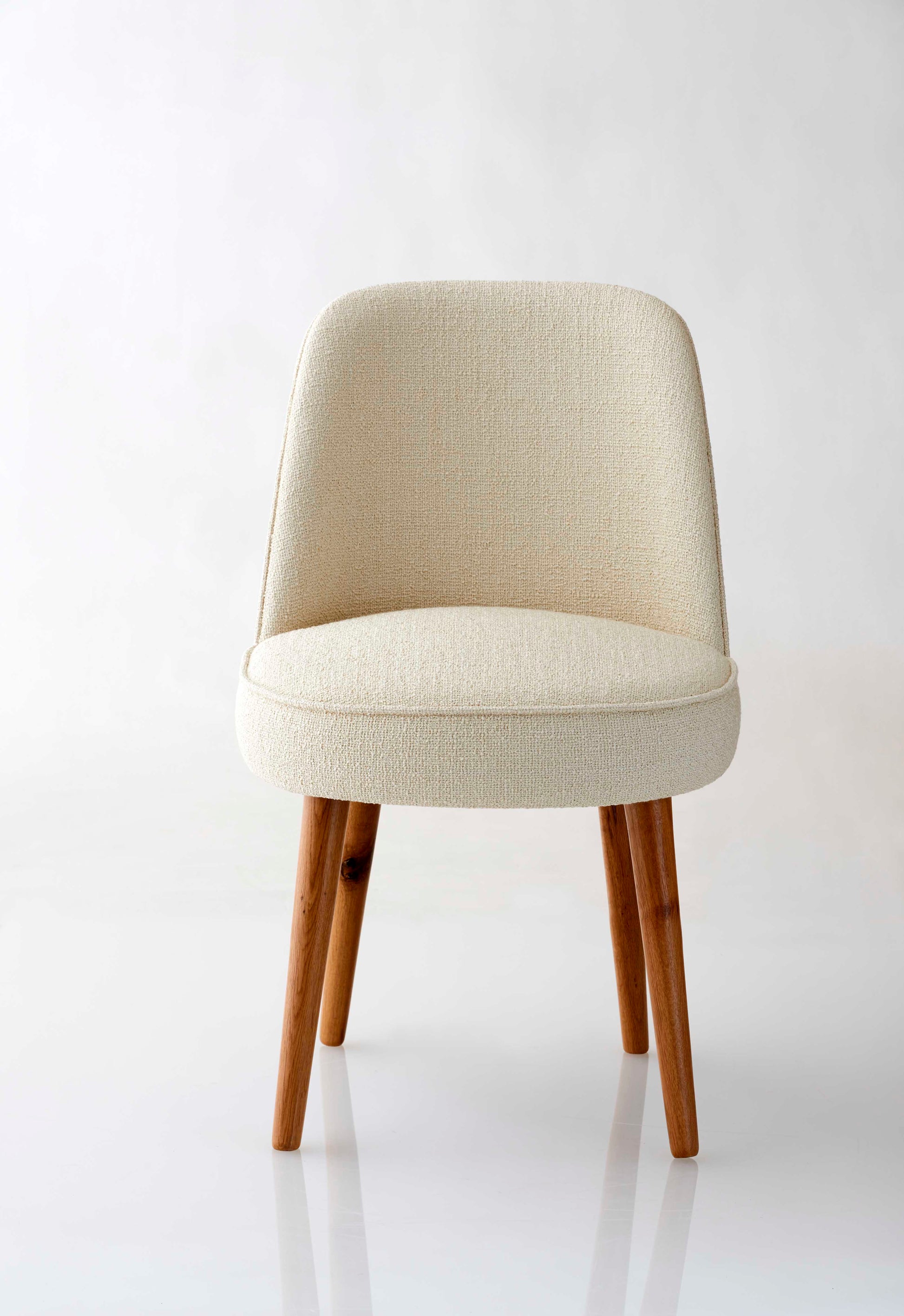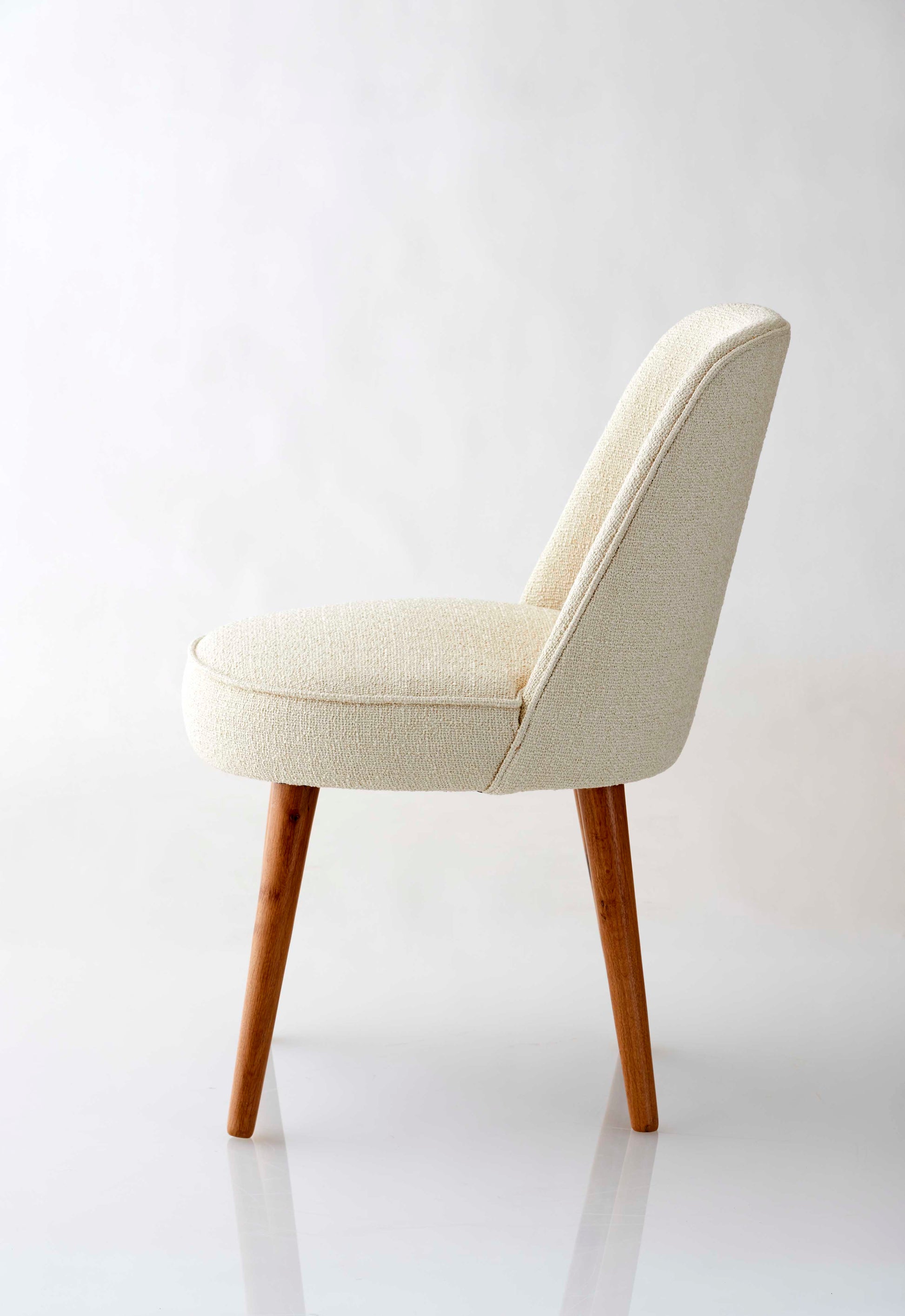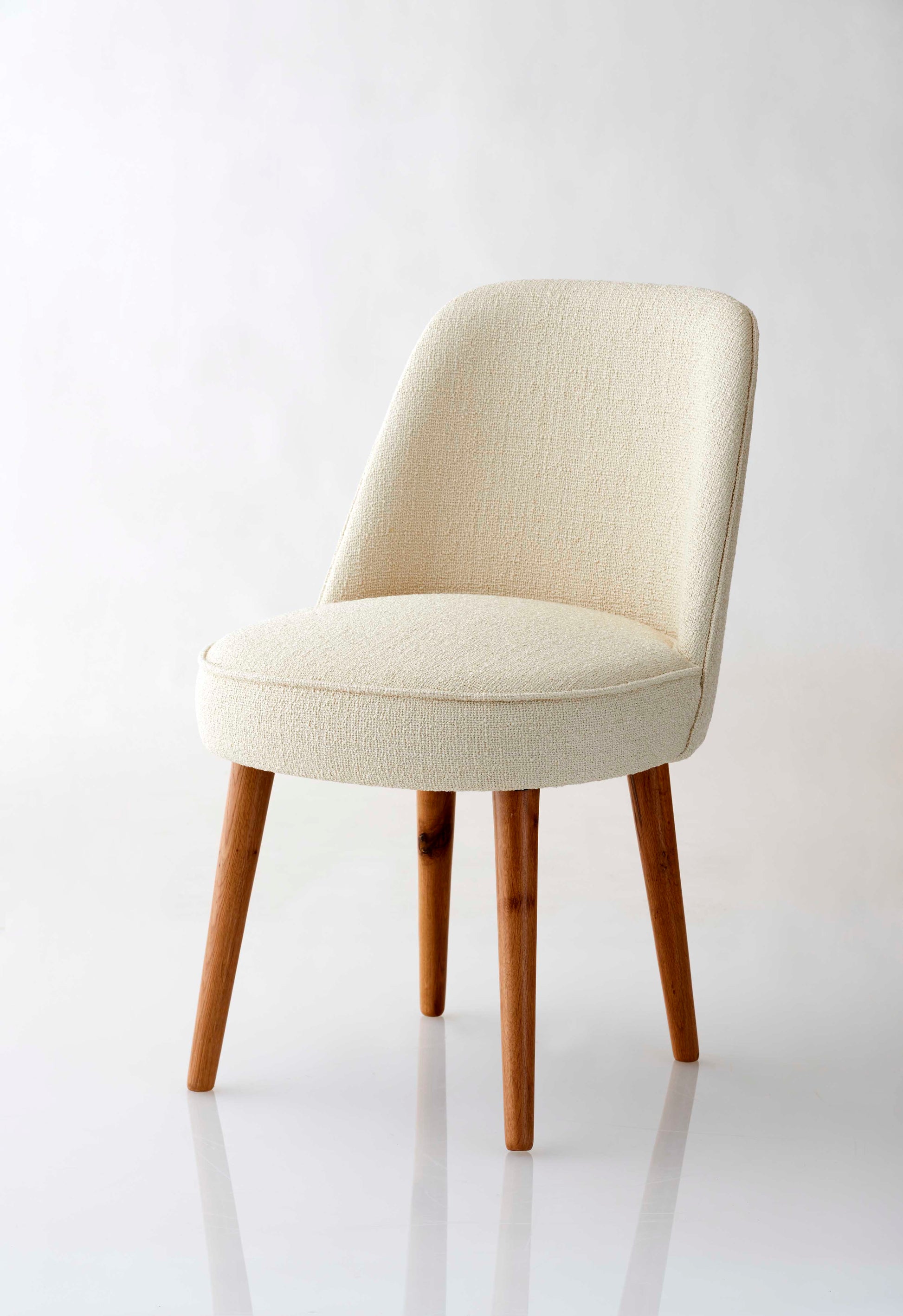 Esszimmerstuhl mit Webtextilpolsterung in Cremefarbe.