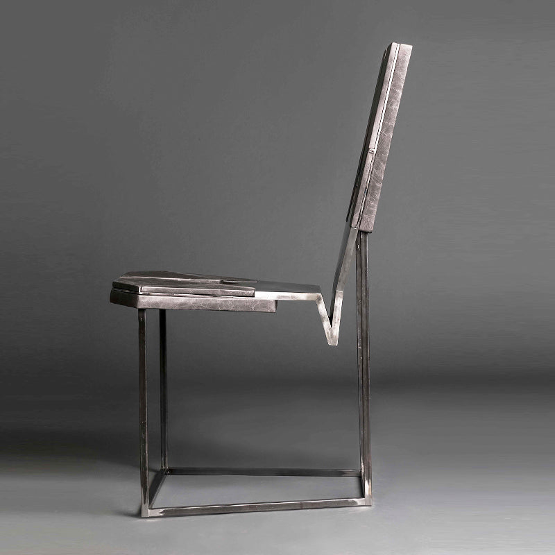 Mit seiner geometrischen Form verbindet der Monarch Chair Eigenschaften eines achtzackigen Sternes mit denen eines Monarchfalters. Er besteht aus einem Metallrahmen, und seine Sitzfläche, sowie seine Rückenlehne ist mit Vintage Leder gepolstert.